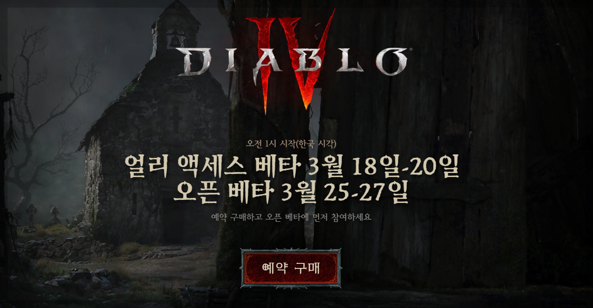 5일 남았다. 이 글을 쓰기 시작하는 시간이 3월 13일 00시 10분이니까, 이번 주 토요일 새벽부터 <디아블로 4> 얼리 액세스 베타 테스트가 시작된다.