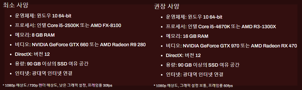 1. 디아블로 4 베타 테스트 권장 사양이 낮다. 7년 전(햇수로는 8년 전)의 국민 그래픽카드인 지포스 GTX 1060으로도 게임할 수 있을 정도로 만만하다. 물론 1080p 해상도에서 그래픽 옵션은 '보통'으로 해야 한다는 조건이 있긴 하다. 풀옵션에서는, 그리고 고해상도에서는 더 좋은 사양이 필요하다. 하지만 베타 테스트에서 풀옵션 그래픽 퀄리티를 하나하나 감상할 사람은 거의 없을 테니까. 원래 쓰던 컴퓨터에 GTX 1060 급 그래픽카드가 달려 있다면 디아블로 4가 재미있는지 없는지 확인하는 정도로는 충분하다.